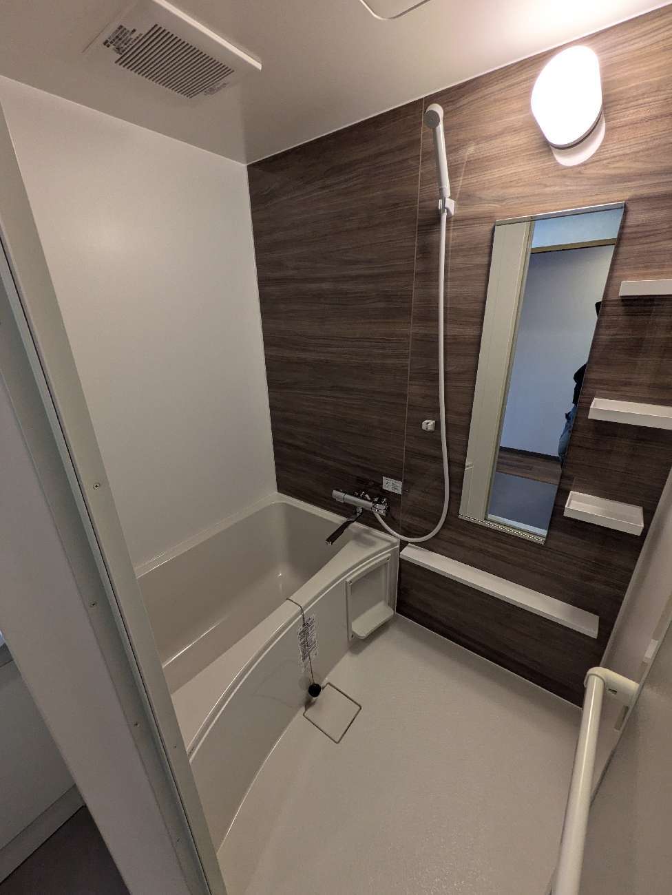 白を基調とした浴槽と床は、清潔感があり、実際の広さ以上にスッキリ感じられるのもポイントです💡