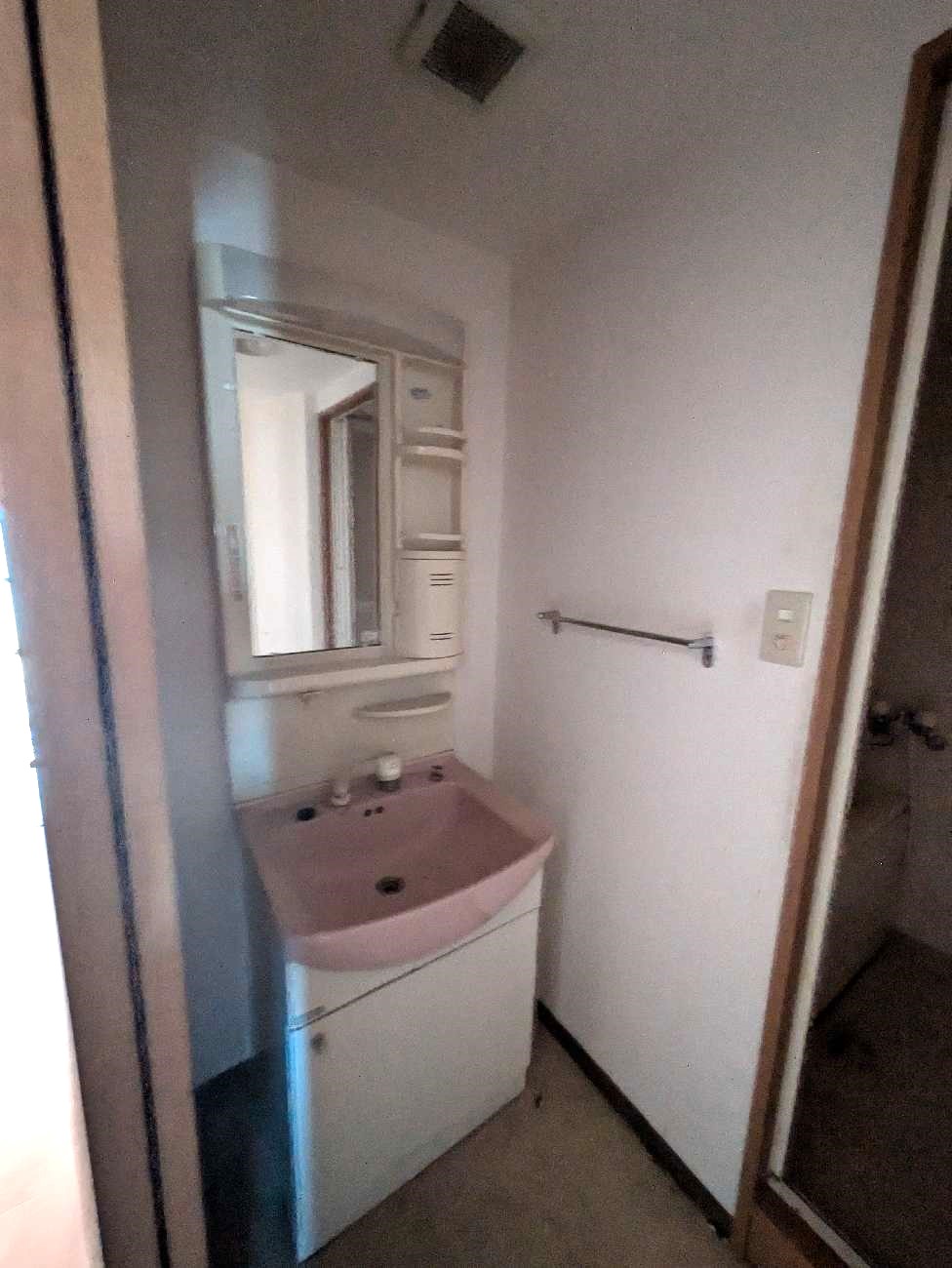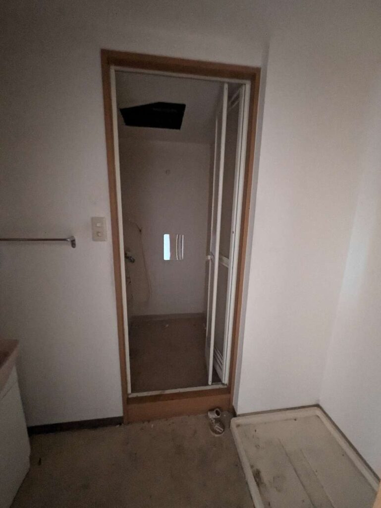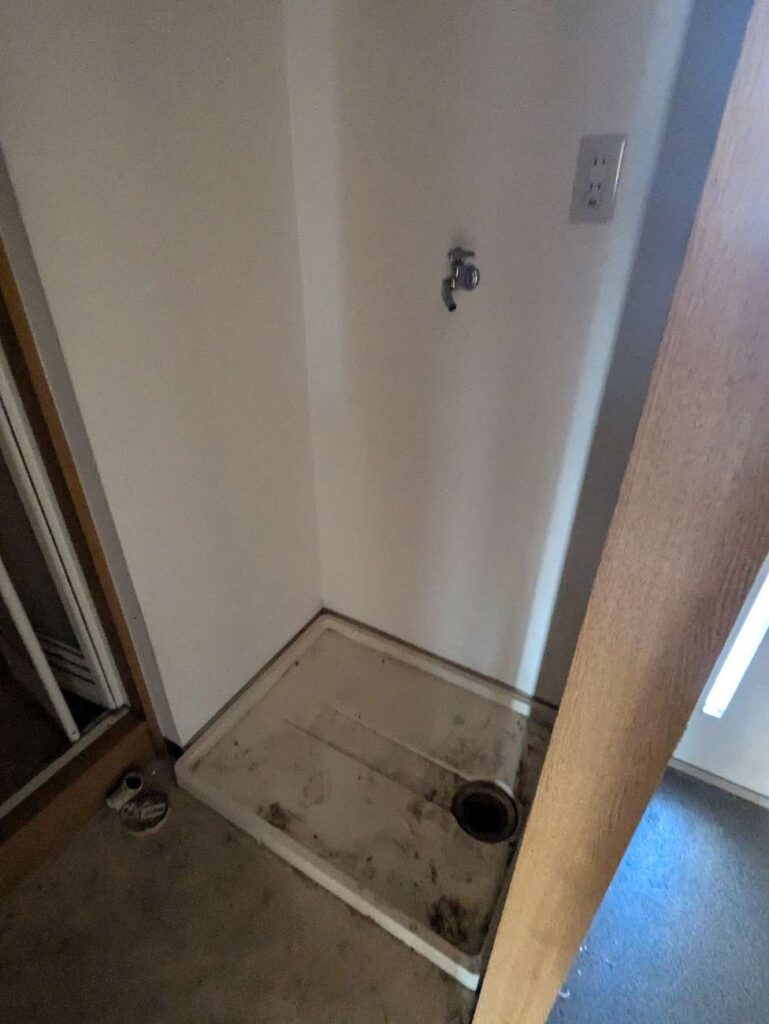 洗濯機置き場まわりも古さが目立ち、「清潔感」という点では少し弱い印象でした。