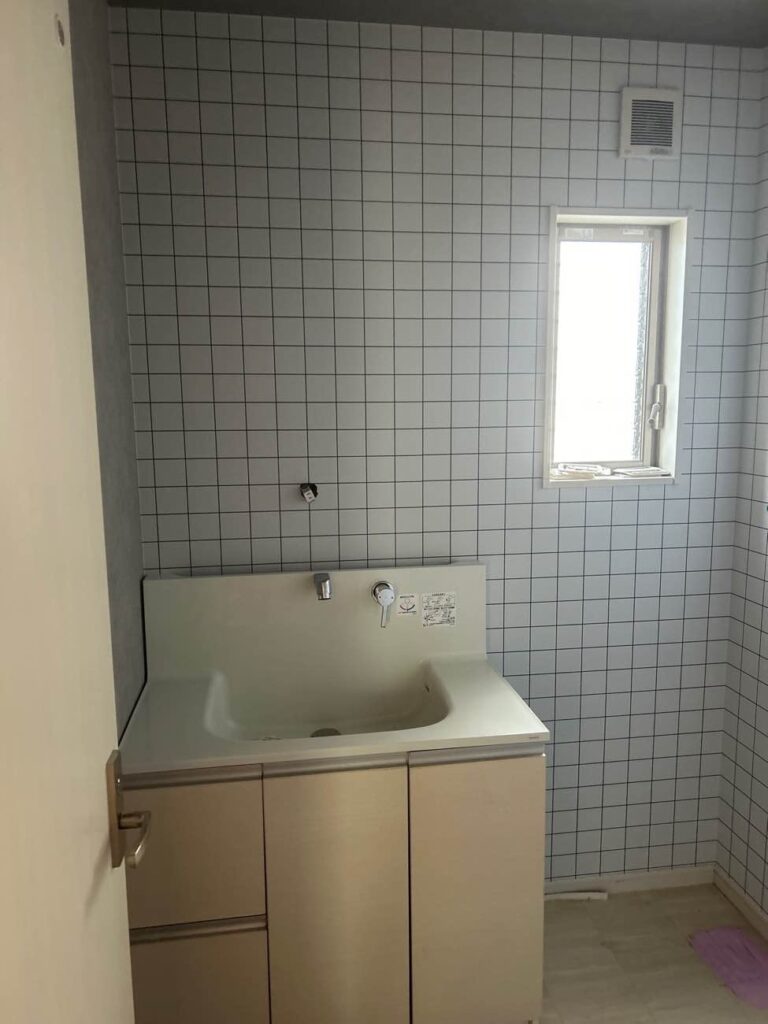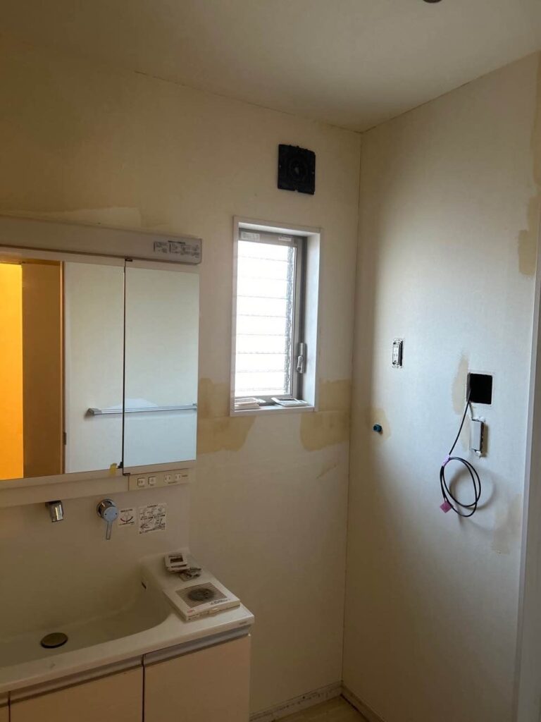壁の作業が完了したらいよいよ洗面化粧台を新調していきます!