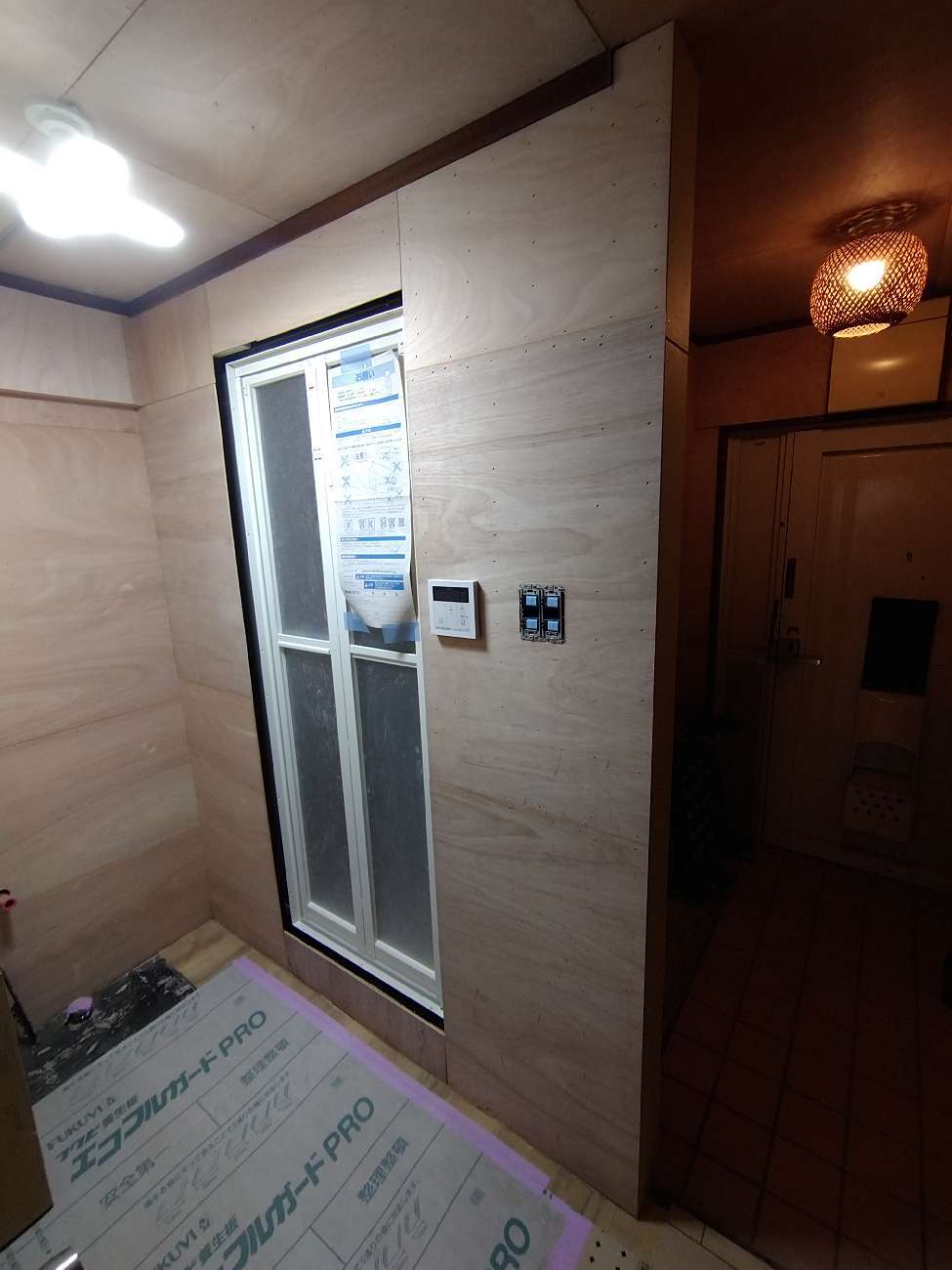 その後新しいバスタブを設置して周囲の柱や扉、壁、床を整えていきます。