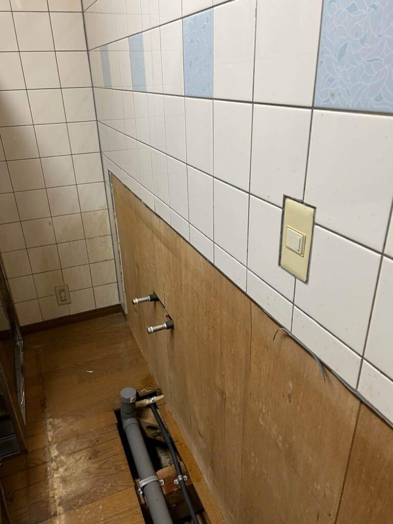 壁の中には、給水管・排水管・ガス管などの配管が通っています。長年使っていると、劣化やズレが出ていることもあります。今回も床を一部開けて確認し、必要な部分は調整・交換を行いました。こうした“見えない部分の点検”こそ、リフォームの大きなメリットです👍