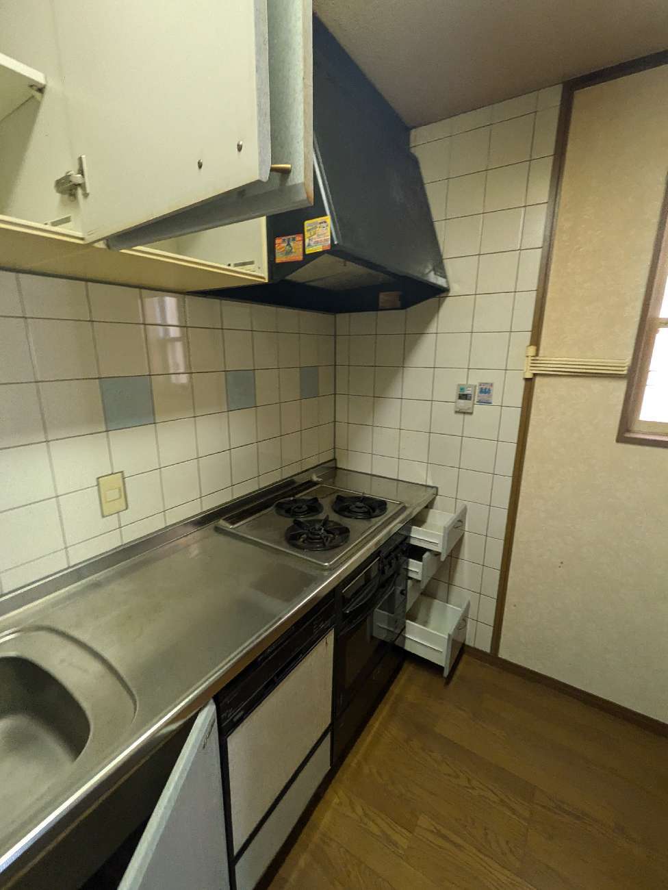 今回の事例も、昔の戸建てキッチンにありがちなタイル貼りの壁やブロック型レンジフード、収納力の限られた吊戸棚など、どこか時代を感じさせる空間でした。